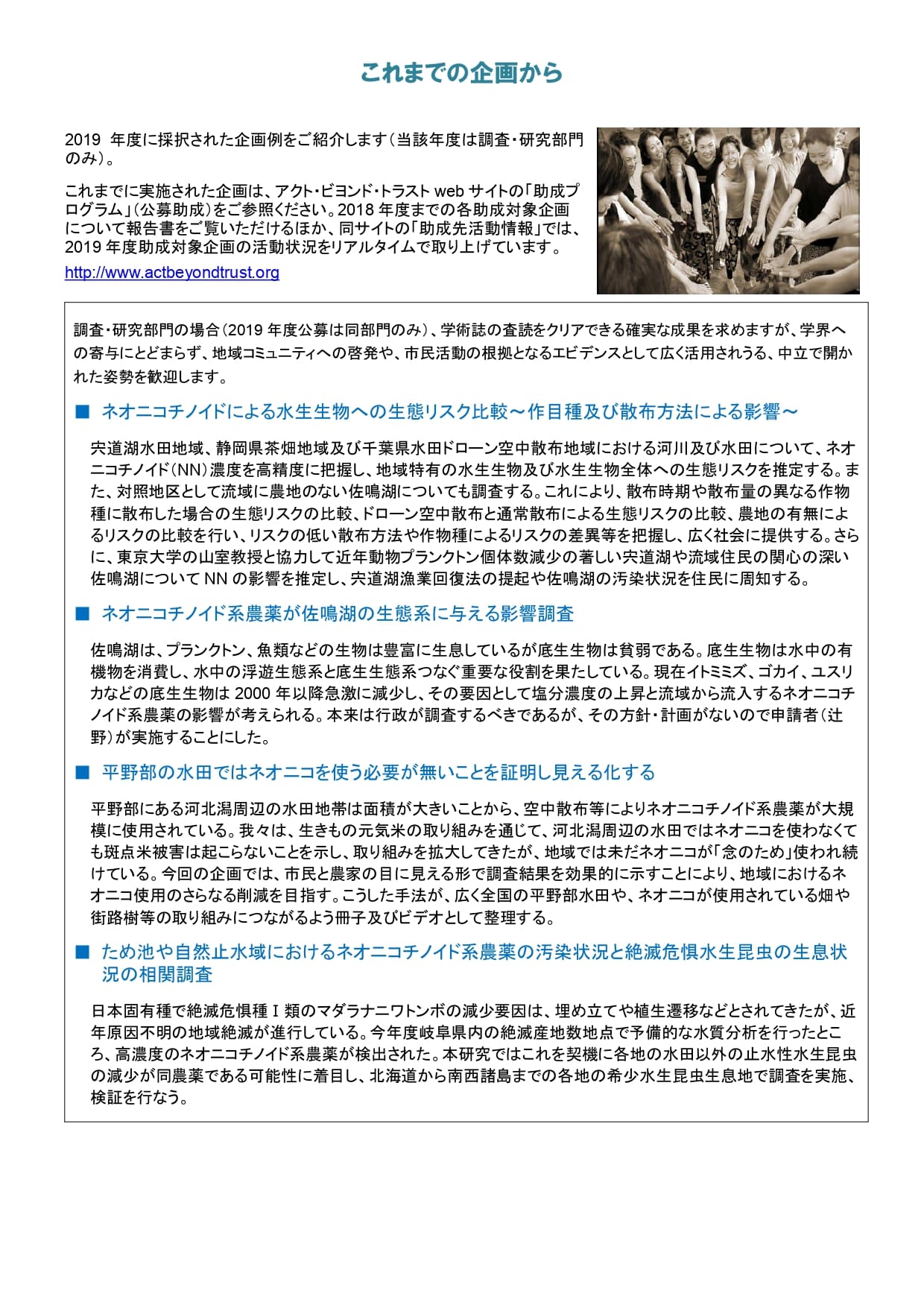 ・活動の功績が顕著である個人、団体、教育機関、及び事業者の方々