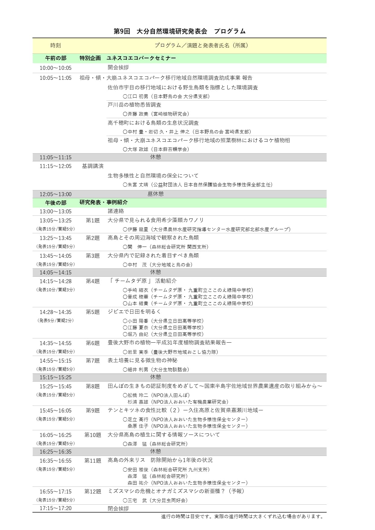 ~第9回 大分自然環境研究発表会~